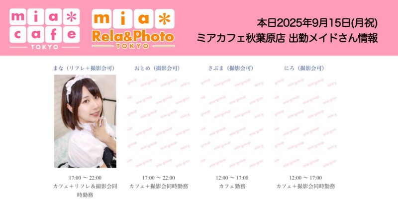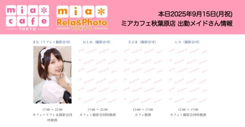 👑本日9月15日(月祝)のミアカフェ秋葉原店