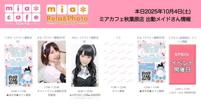 👑本日10月4日(土)のミアカフェ秋葉原店