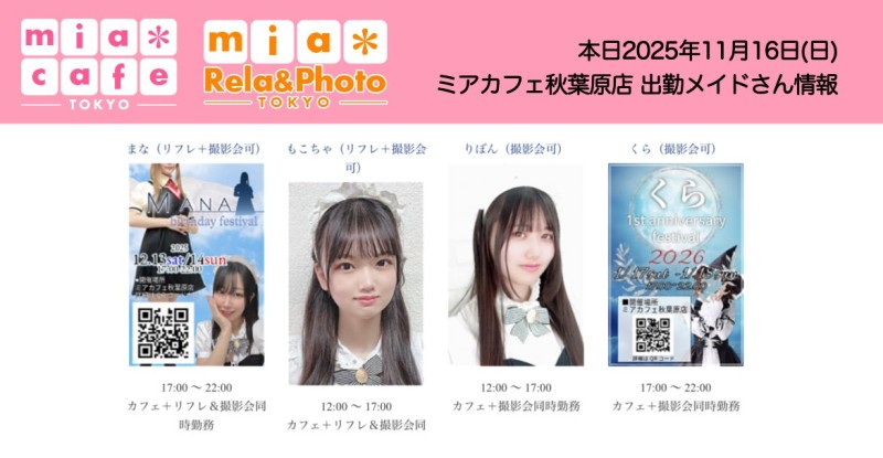 👑本日11月16日(日)のミアカフェ秋葉原店