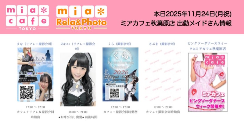 👑本日11月24日(月祝)のミアカフェ秋葉原店