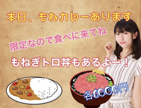 今夜は18時~✨ #根本もねの店 もねカレー🍛 もねぎトロ丼もあるよっ😋 食べに来てねー❤ お待ちしております! https://t.co/5NkHcHRUNG