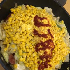 塩バターコーン焼きそばオムレツ乗せ✨特盛り✨ #根本もねの店 https://t.co/DxJ6nba6I2