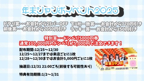 📢年末ジャンボイベント詳細📢
